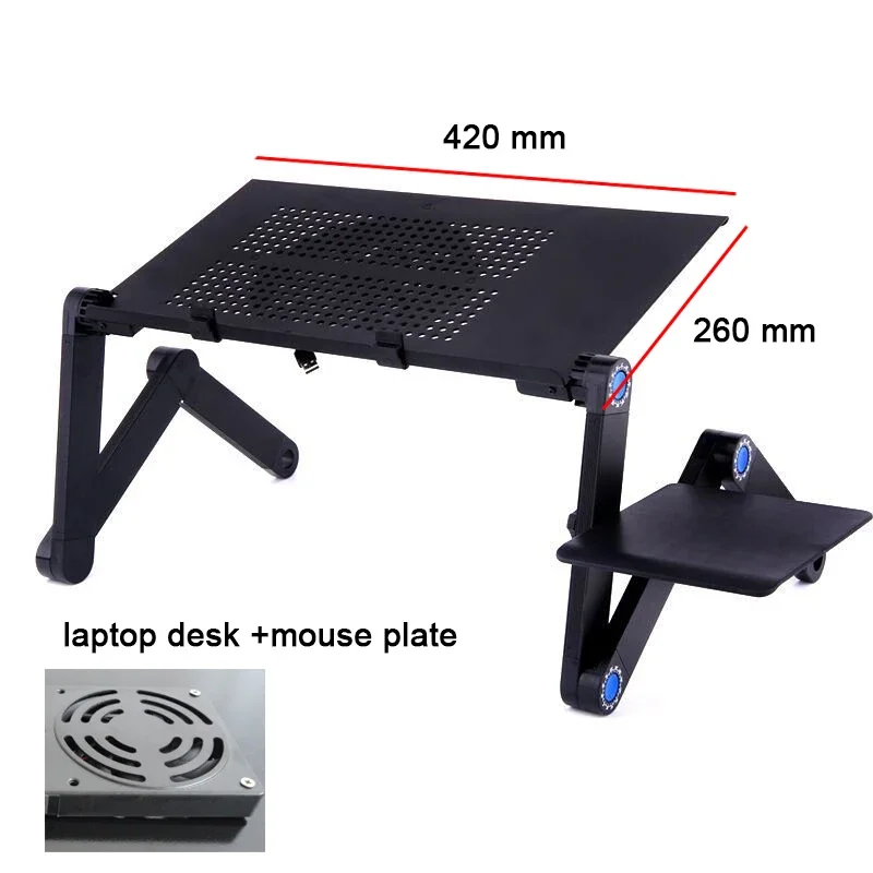Support de bureau de radiateur pour ordinateur portable réglable, bureau d’écoute ergonomique Portable pour lit TV, canapé, PC, Table pour ordinateur portable, bureau avec tapis de souris en aluminium